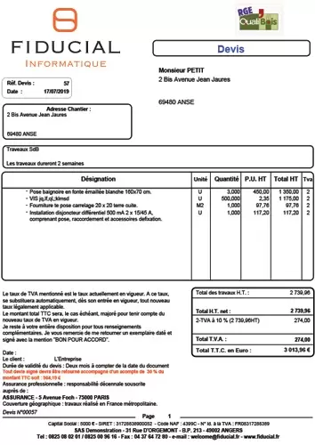 Un logiciel de facturation bâtiment comme FIDUCIAL Winbat vous permet également de limiter le risque d’erreur dans vos factures grâce à l’intégration des différents taux de TVA et de l’éco-participation. Le logiciel s’occupe de tout et vous gagnez en efficacité !