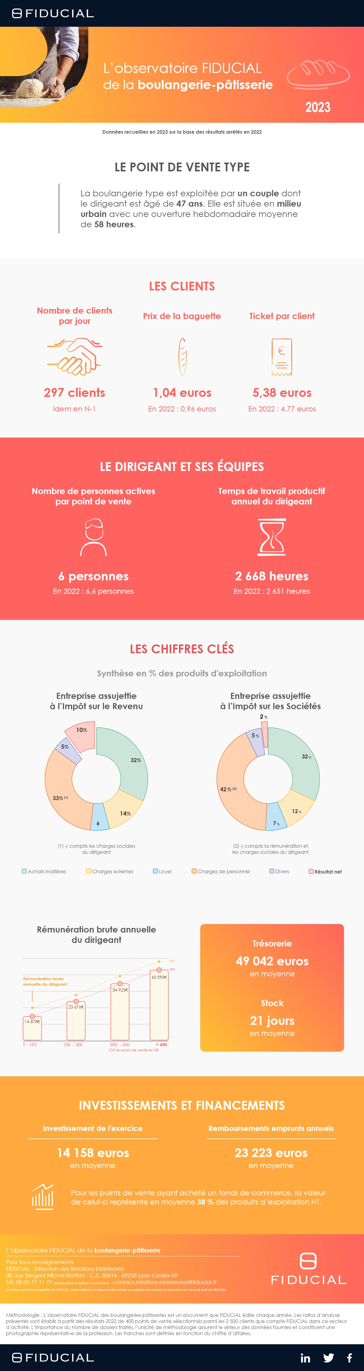 Découvrez l'infographie reprenant les chiffres clés et téléchargez les résultats complets de l'Observatoire 2023 de la boulangerie-pâtisserie :
