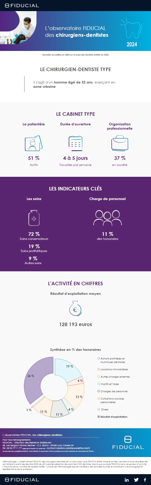 L’activité des cabinets dentaires est marquée par une légère progression des honoraires moyens qui compensent la progression des charges, en particulier les cotisations sociales personnelles.