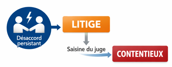 Tant que les parties dialoguent, le différend peut encore être résolu à l’amiable. Le litige apparaît dès lors que les positions deviennent opposées et que le désaccord persiste. Il peut alors conduire à l’intervention d’un tiers, tel qu’un médiateur ou un conciliateur, voire à la saisine d’une juridiction.