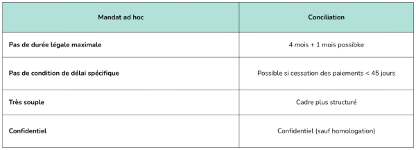 Un mandataire ou un conciliateur est alors désigné pour accompagner les échanges avec les créanciers et faciliter la recherche d’un accord. Dans le cas de la conciliation, une durée maximale est prévue (quatre mois, prorogeable d’un mois au maximum), ce qui n’est pas le cas pour le mandat ad hoc.