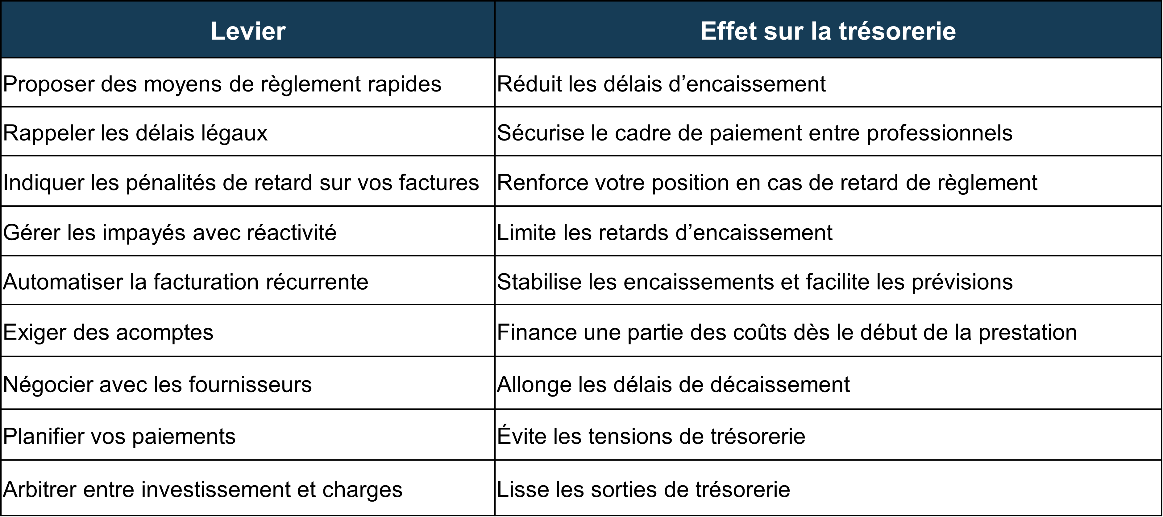 Tableau : Les leviers concrets pour améliorer votre trésorerie