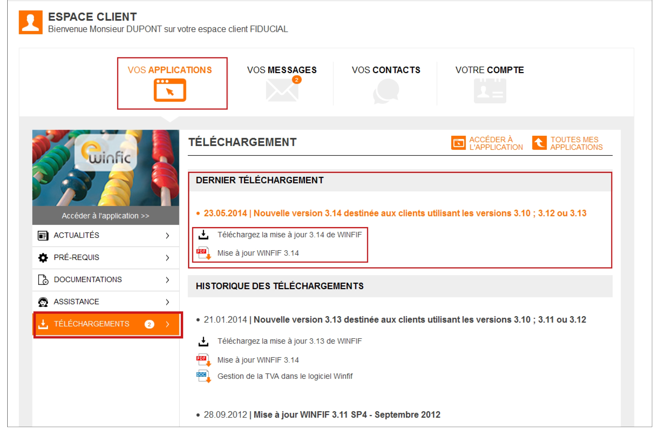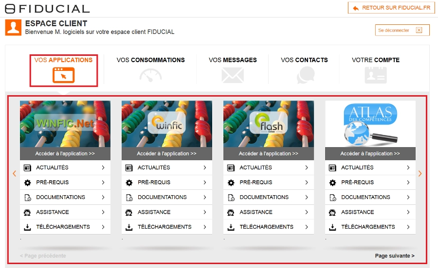 - Vos messages : retrouvez tous les messages d'actualités, les documentations et téléchargements concernant votre logiciel. Restez informés également des nouveautés et événements de votre agence FIDUCIAL ;