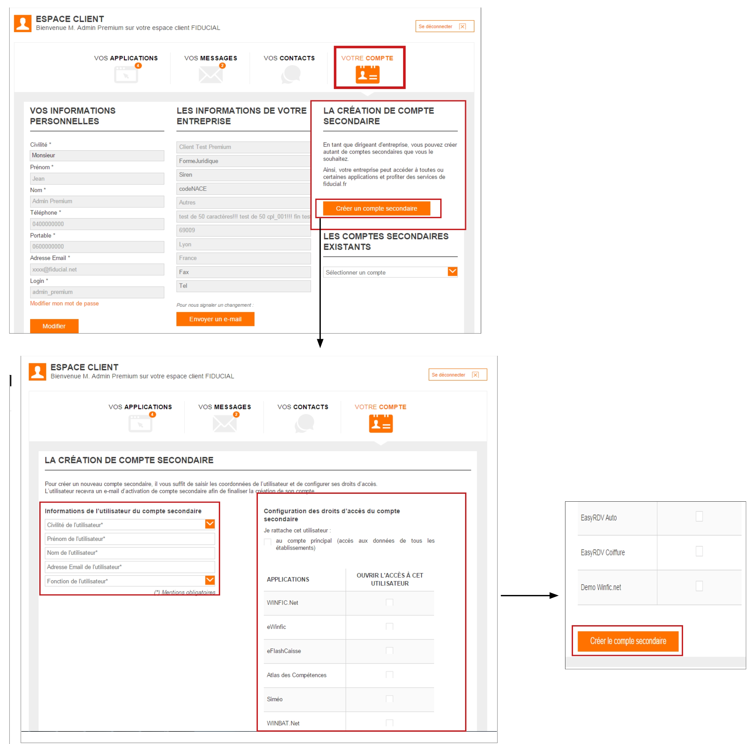 - Vos comptes secondaires : Vous pouvez créer des comptes secondaires et configurer leurs droits d'accès pour que votre entreprise accède et profite des services et applications de fiducial.fr.