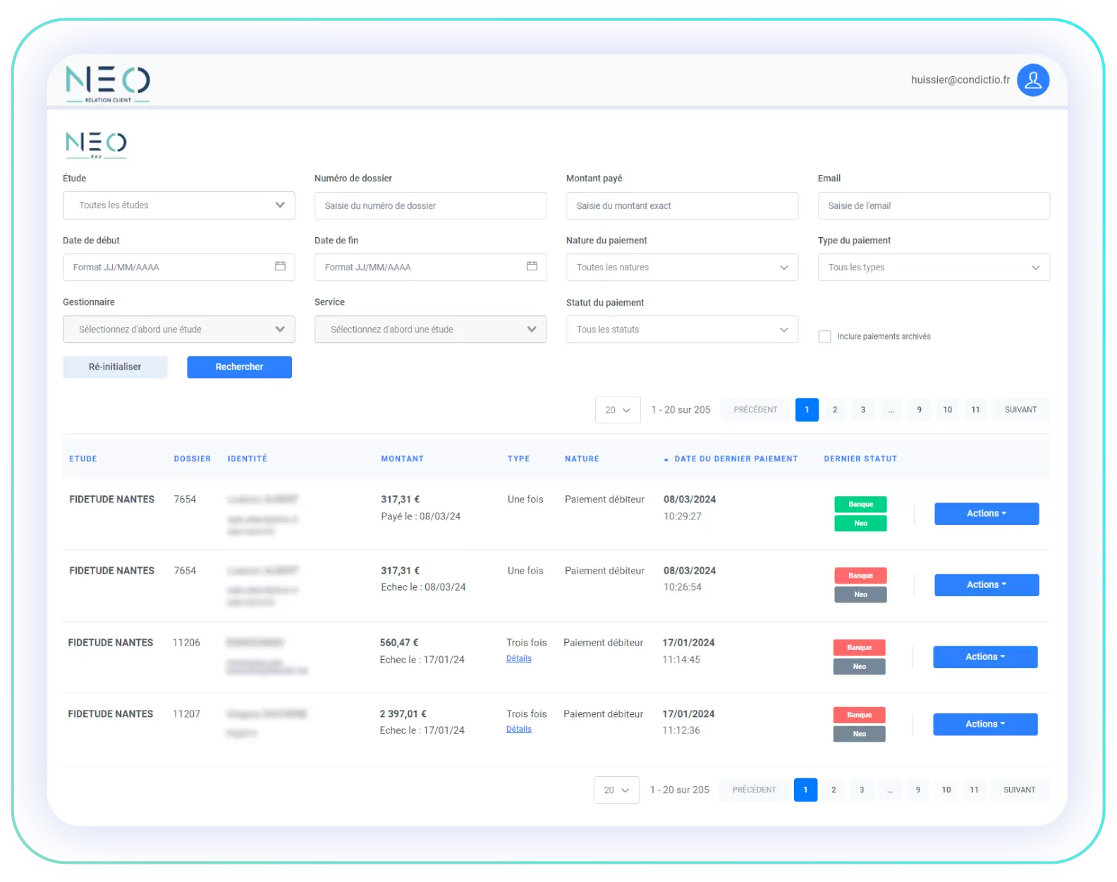 Tous les paiements sont mis à jour en temps réel dans NEO