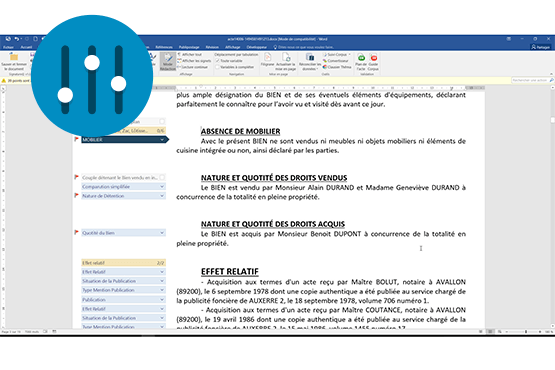 Chaque modification influe en temps réel sur l’ensemble de l’acte pour garantir une cohérence parfaite associée à une sécurité juridique robuste.