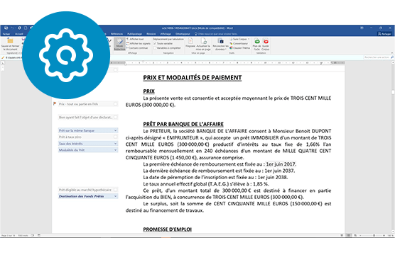 Avec Signature, vous pouvez rédiger et modifier les différents champs de vos actes directement dans Word.