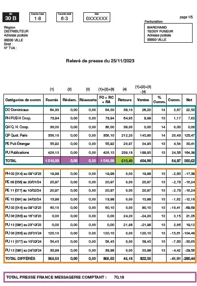 Le relevé de presse correspond à la facture hebdomadaire de la presse livrée au point de vente retraitée des invendus retournés.