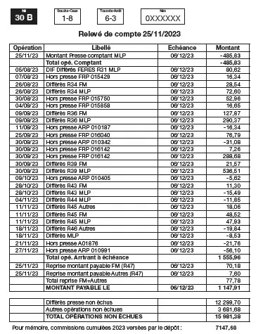 Les relevés de presse sont complétés par un relevé de compte, qui détaille le montant du paiement prélevé chaque semaine par le dépositaire.