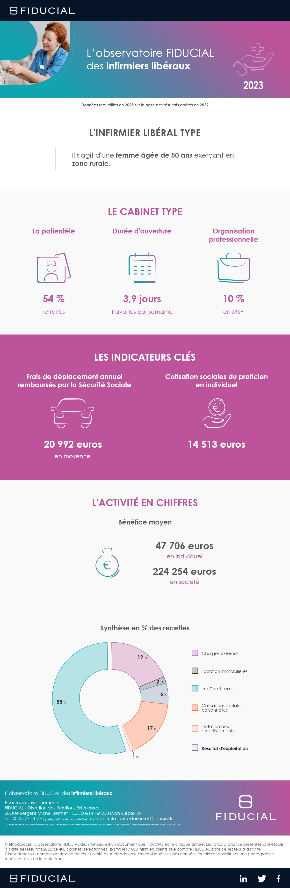 Les infirmiers libéraux maintiennent leur niveau d’activité et voient encore légèrement progresser leurs recettes. Cependant la hausse des charges d’exploitation (+2 points) en lien notamment avec l’augmentation des cotisations sociales personnelles pénalise leur bénéfice.