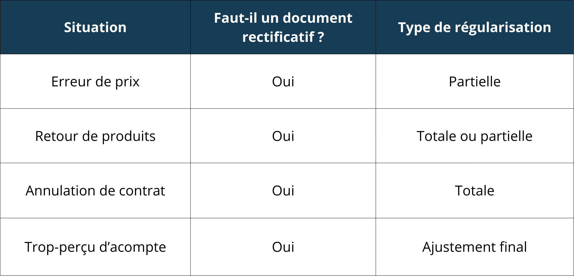 - La TVA est régularisée au même taux que la facture initiale, selon votre régime d’exigibilité.