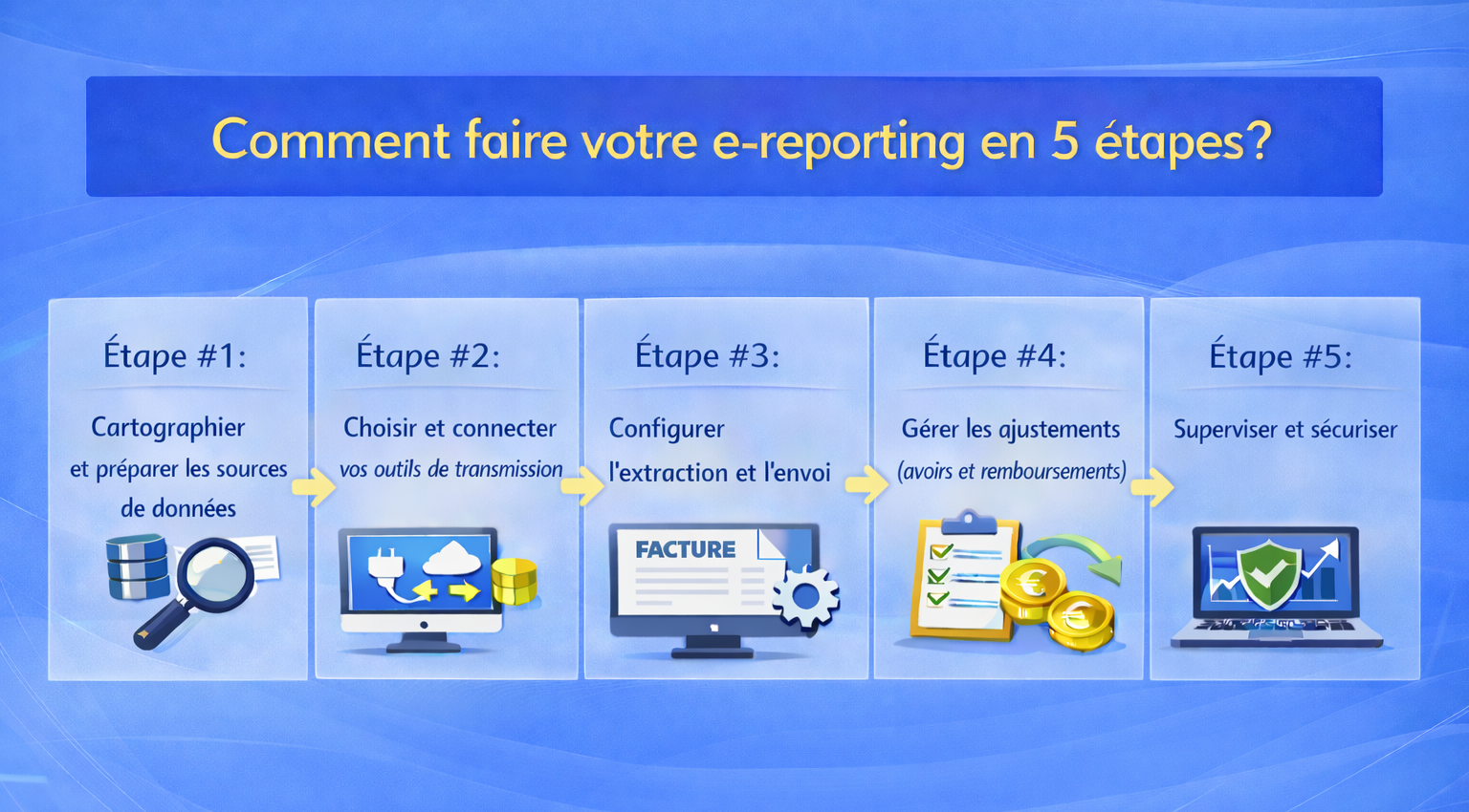 La mise en conformité avec le e-reporting suit un plan d'action précis qui doit être intégré à votre transition vers la facturation électronique.