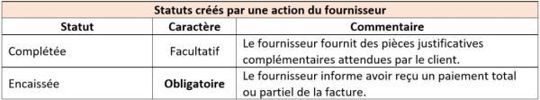 Les statuts gérés par les PA n’exigent aucune action du fournisseur ou du client.