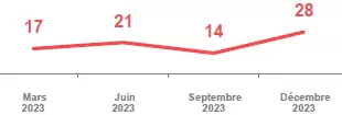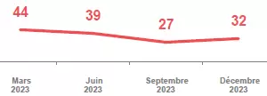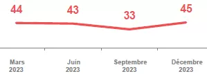 Même tendance pour l’indicateur de confiance envers le climat général des affaires, en progression de 7 points sur le quatrième trimestre. Au terme de 2023, s’ils restent minoritaires, les décideurs sont ainsi 33 % à se dire optimistes pour le climat des affaires, contre 26% trois mois plus tôt.