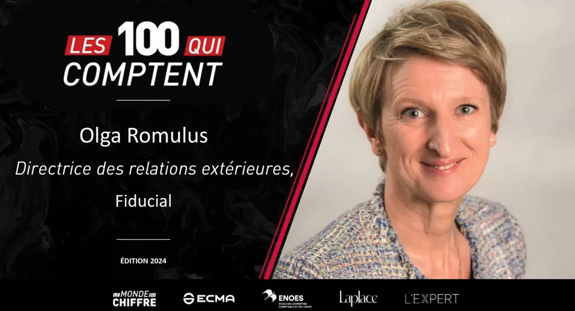 Olga Romulus, Directrice des Relations Extérieures de FIDUCIAL, a été distinguée dans ce classement, qui vient mettre en lumière 100 acteurs clés de la profession comptable pour leur engagement exceptionnel, leur dynamisme et leur esprit d’innovation.
