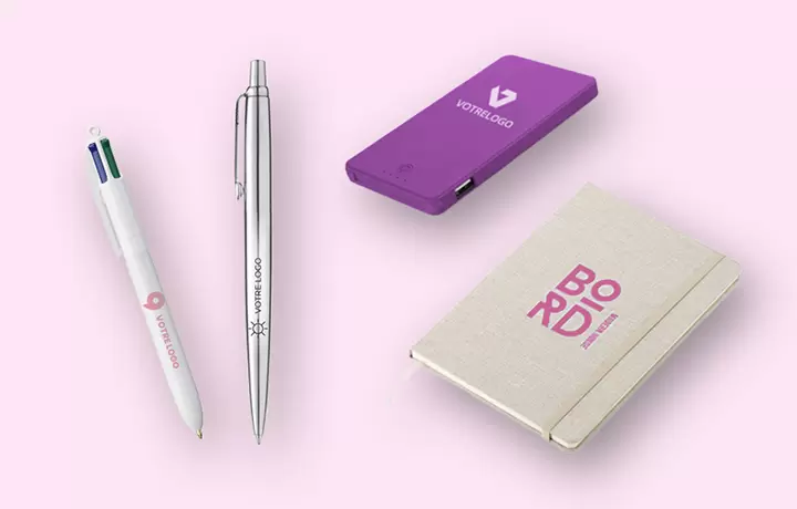 Découvrez les fournitures de bureau personnalisées pour votre entreprise. Ajoutez une touche d’élégance et de professionalisme à votre environnement de travail avec de beaux stylos, post-it, tapis de souris et autres à votre image.