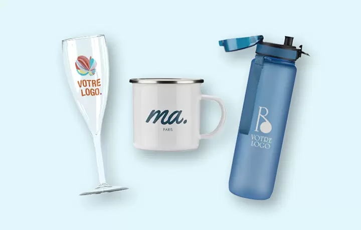 Classique mais toujours tendance ! Retrouvez les gourdes, bouteilles réutilisables, verres, tasses ou mugs avec impression personnalisée. Ce sont des objets publicitaires indémodables et écologiques.